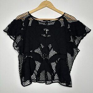 Forever 21 Black Cropped Open Mesh Crochet Top Womens Size S Fairy Whimsigoth