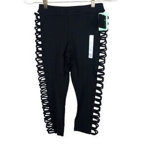 Forever 21 Black Cut Out Caged Corset Sexy High Rise Crop Leggings XS NWT