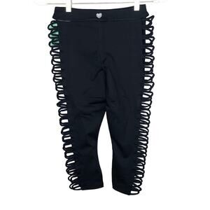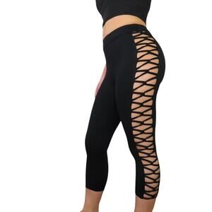 Forever 21 Active Cut Out Capri Leggings. Forever 21 High Rise Leggings. Black Caged Leggings with Side Corset Detail. Criss Cross Cut Out Loop Side Detail. Ankle Crop Yoga Leggings