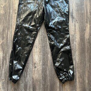 Forever 21 Black Faux Leather Jogger Pants – Shiny Elastic Waist, Size S
