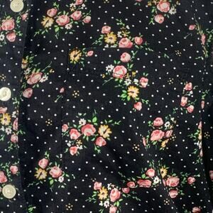 Elevate your wardrobe with this charming Forever 21 blouse! This delightful piece features a black floral pattern with subtle polka dots, offering a unique and stylish look.
