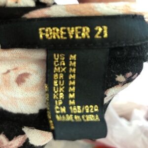 Forever 21 Black Floral Crop Top with Pink Roses, with Ruffle at neck Sz Medium