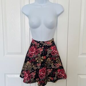 Forever 21 Black Floral Mini Skirt with Skater Silhouette