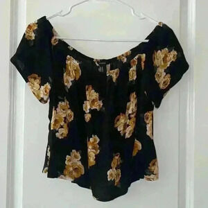 Chic black top with vibrant floral pattern. Off-shoulder design. Perfect for casual outings.