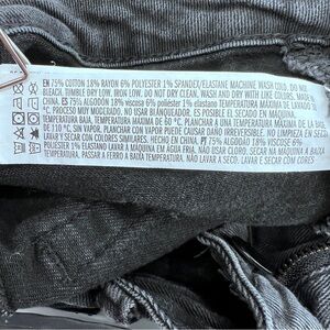 Stylish black jeans with frayed hems. Perfect for a trendy look.