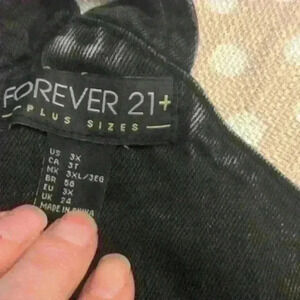 Super cute black denim jumper with exposed front zipper by Forever 21.