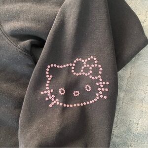 Stylish black hoodie featuring Hello Kitty design. Ideal for everyday comfort.