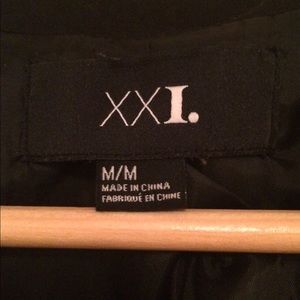 It's a very cute and stylish little jacket. It's a medium, it has 3/4 sleeves, two pockets and two buttons.