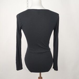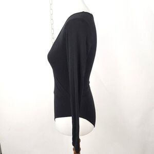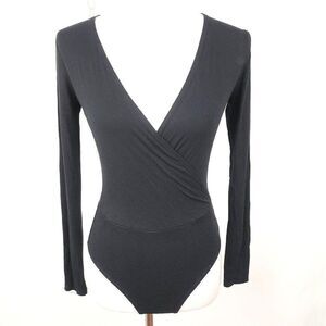 Forever 21 Black Jersey Knit Long Sleeve Deep Cut V-Neck Wrap Bodysuit Womens S