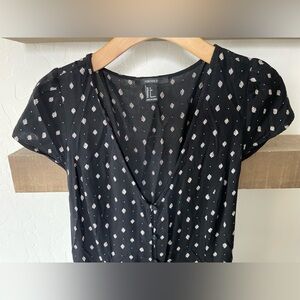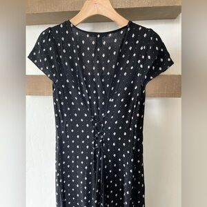 Forever 21| Black Leaf/Floral Maxi Dress with Buttons on Front & Lace Back••90’s