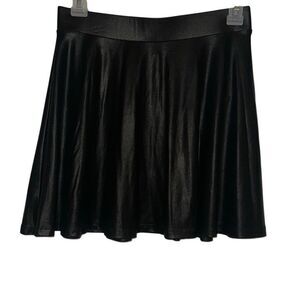Forever 21 Black Leather look alike Stretch Pull-on Mini Skater Skirt Juniors Medium