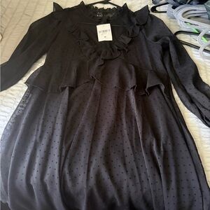 Forever 21 Black Long Sleeve Ruffled Dress
