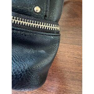 Trendy Forever 21 black faux leather mini backpack featuring gold-tone studs and a decorative front zipper detail. Compact but roomy with a main zip compartment and interior slip pocket. Adjustable straps and a soft pebble-textured finish make it the perfect everyday or concert bag.