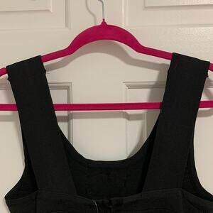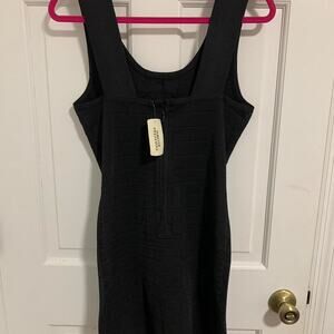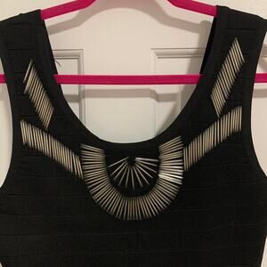 black mini dress, silver accents, fitted, stretch fabric, party wear, holiday outfit, glamorous, sleeveless, bodycon, NWT
