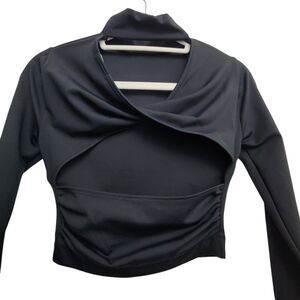Forever 21 Black Mock Neck Criss Cross Open Back Long Sleeve Crop Top XS