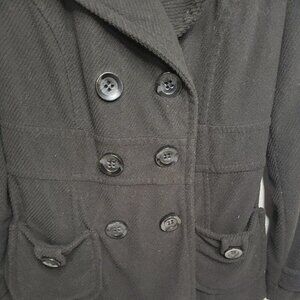 Keywords: Forever 21, peacoat, black jacket, womens coat, double breasted, collared jacket, outerwear, small, petite, casual jacket, wool blend, lined jacket, fall fashion, winter coat