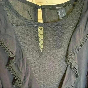 Forever 21 Black Poet Sleeve Ruffle Blouse Size Small NWT Long sleeve See through panel on front Poet sleeve NWT