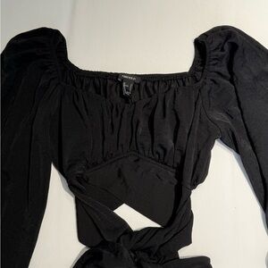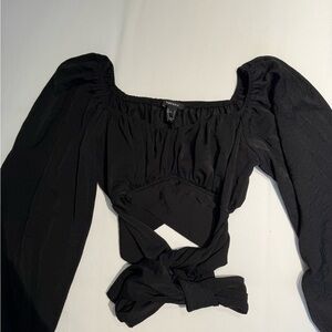 Black off the shoulder tie top that you tie in the back. Perfect for a girls night out #Croptop #club #partyoutfit #forever21 #backtoschool