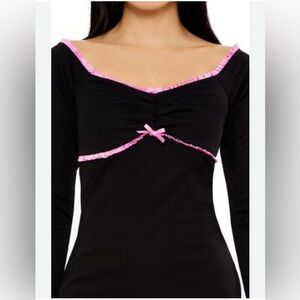 Forever 21 Black Ribbed Knit Bodycon Mini Dress Pink Ruffle Trim size Medium New