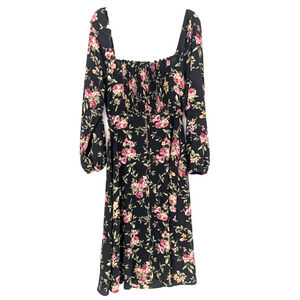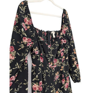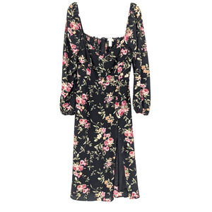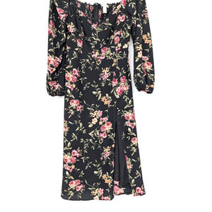 Forever 21 Black Rose Print Cottagecore Babydoll Milkmaid Chiffon Midi Dress LRG