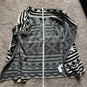 Forever 21 Aztec cardigan, geometric pattern sweater, boho knit wrap, draped cardigan sweater, cozy tribal print cardigan, bohemian layering piece, long sleeve open front sweater, soft acrylic cardigan, neutral tone sweater, boho chic sweater, forever 21 small sweater, fall outfit idea, winter layering cardigan, beige and black tribal sweater, cozy cottagecore cardigan, soft knit outerwear, comfy fall knit, southwest inspired sweater, modern boho cardigan, soft knit drape sweater, casual winter outfit topper, stylish work-from-home layering piece