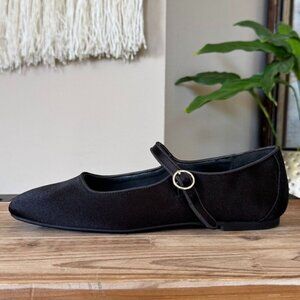 Forever 21 Black Satin Silver Buckle Square Toe Maryjane Ballet Flat Size 8.5