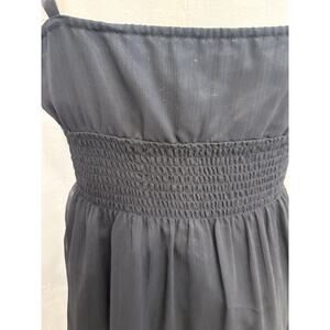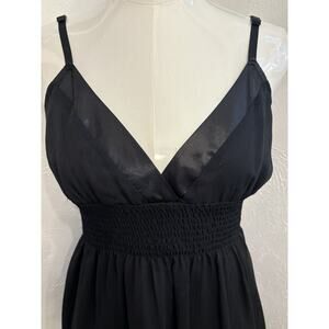Forever 21 Black Satin Trim Baby Doll Dress Size Small Smocked Lined Whimsigoth