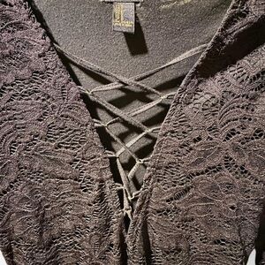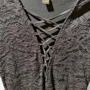 Forever 21 Black Lace Longsleeve Bodysuit size Small