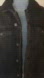 Stylish black jean jacket. Features button closure. Classic design with chest pockets.