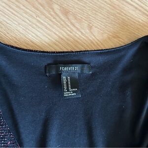 Forever 21 Black Shimmer Deep V-Neck Dress Medium