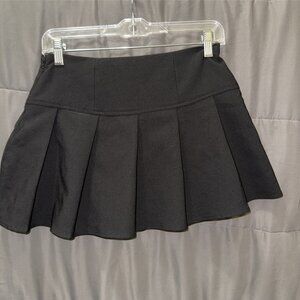 Forever 21 Black Skater Mini Skirt Womens Size SMALL Pleated Flared Solid