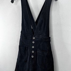 Forever 21 Black Skirt Jumper Mini Dress size S Button Front Pockets Grunge