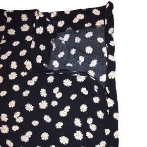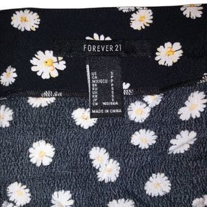 Forever 21 Black Skirt with Daisies , Lacey Trim , and a Small Side Slit 🌼🌼🌼