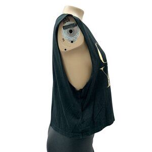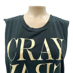 Forever 21 Black Sleeveless Graphic Crop Tank Top "Cray" Gold Print Womens S