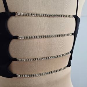 Forever 21 Black Spaghetti Strap Crop Top Y2K Rhinesone Strappy Open Back Bling