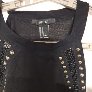 Forever 21 Black Studded Cold Shoulder Blouse Biker Grundge Cold Shoulder.