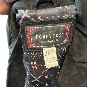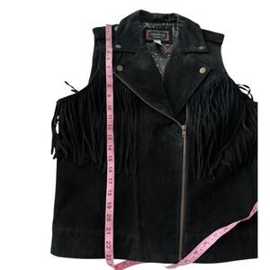 Forever 21 Black Suede Leather Fringe Vest Large Western Biker Rodeo Edgy