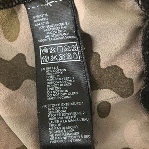 Looks like a basic black crew neck sweater....until you turn around it’s anything BUT basic! Lightweight crew sweater front and a mid-sheer back in a very cool camouflage pattern.