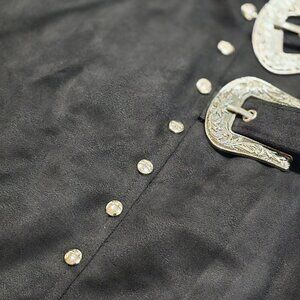 Forever 21 ✦ Black Vegan Suede Mini Skirt ✦ Silver Western Buckles Rivet Details