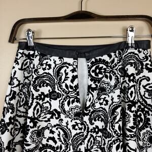 Gently used. Size small. Black velvet design on white background. Mini skirt with faux leather waist band.
