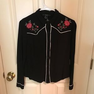 Forever 21 Black Western Style Blouse Size Small Pre-used in Good Condition