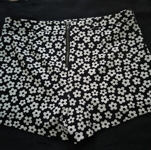 Super cute Forever 21 black and white daisy shorts. Fitted high waisted silhouette with back zipper and great stretchy polyester fabric. Probably would hit around mid thigh. Excellent condition, worn only a few times.