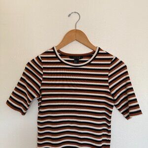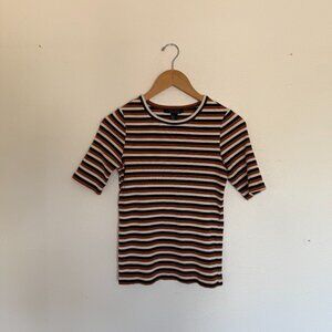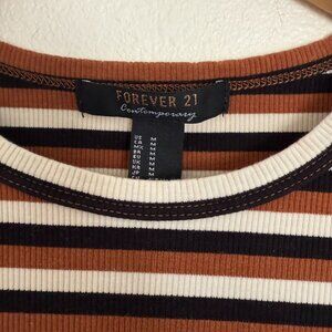 Forever 21 Black and Brown Stripped Ribbed Fitted Tee Medium