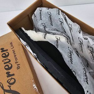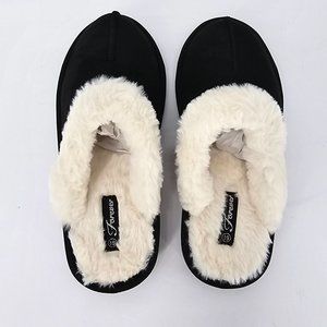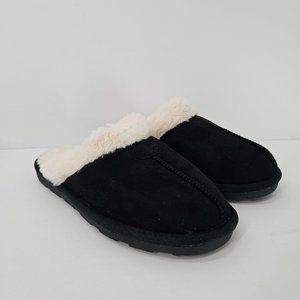 Cozy mules with plush cream lining. Sleek black exterior. Perfect for comfort and style.