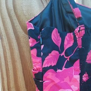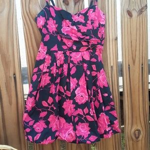 Forever 21 (tag Twenty One) Sleeveless Black and Pink Floral/Roses Fancy Party Cocktail Dress