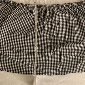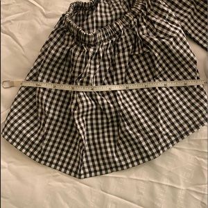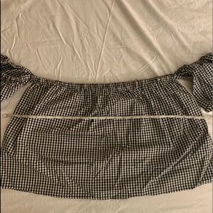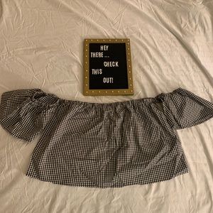tags: trendy, spring, summer, cropped, off the shoulder, plaid, cute, simple, blouse, black, white, short sleeves, basic, casual, puffed sleeve