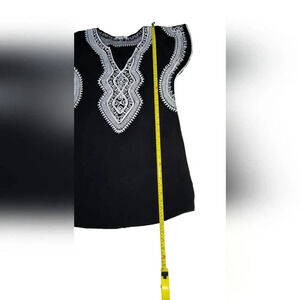 Forever 21 Black and White Embroidered Boho Minidress with Pockets, L, the care and material tag has been removed but it feels soft like Rayon, in excellent pre-loved condition