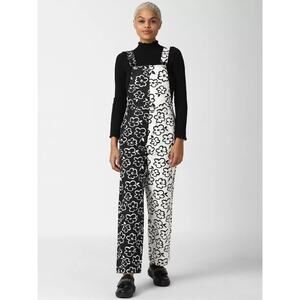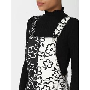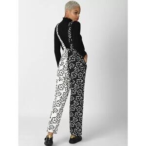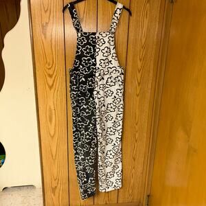 Forever 21 Black and White Floral Overalls Size Medium Zipper Pockets Two Tone
