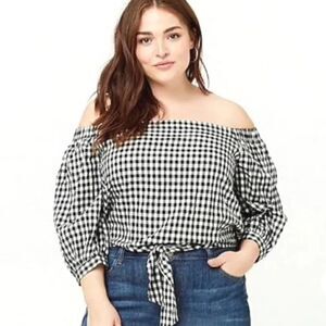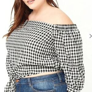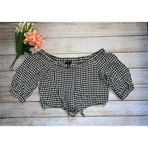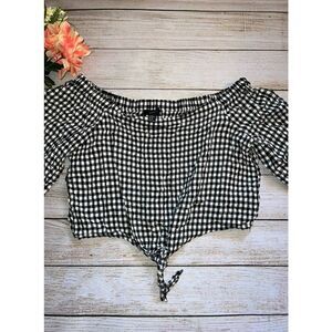 Forever 21+ Black and White Gingham Tie Front Crop Top (Sz 2X)