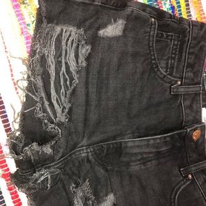 Super cute black distressed shorts from forever 21. The buttons lost its color it was originally black buttons however the rest of the short itself is in good condition!